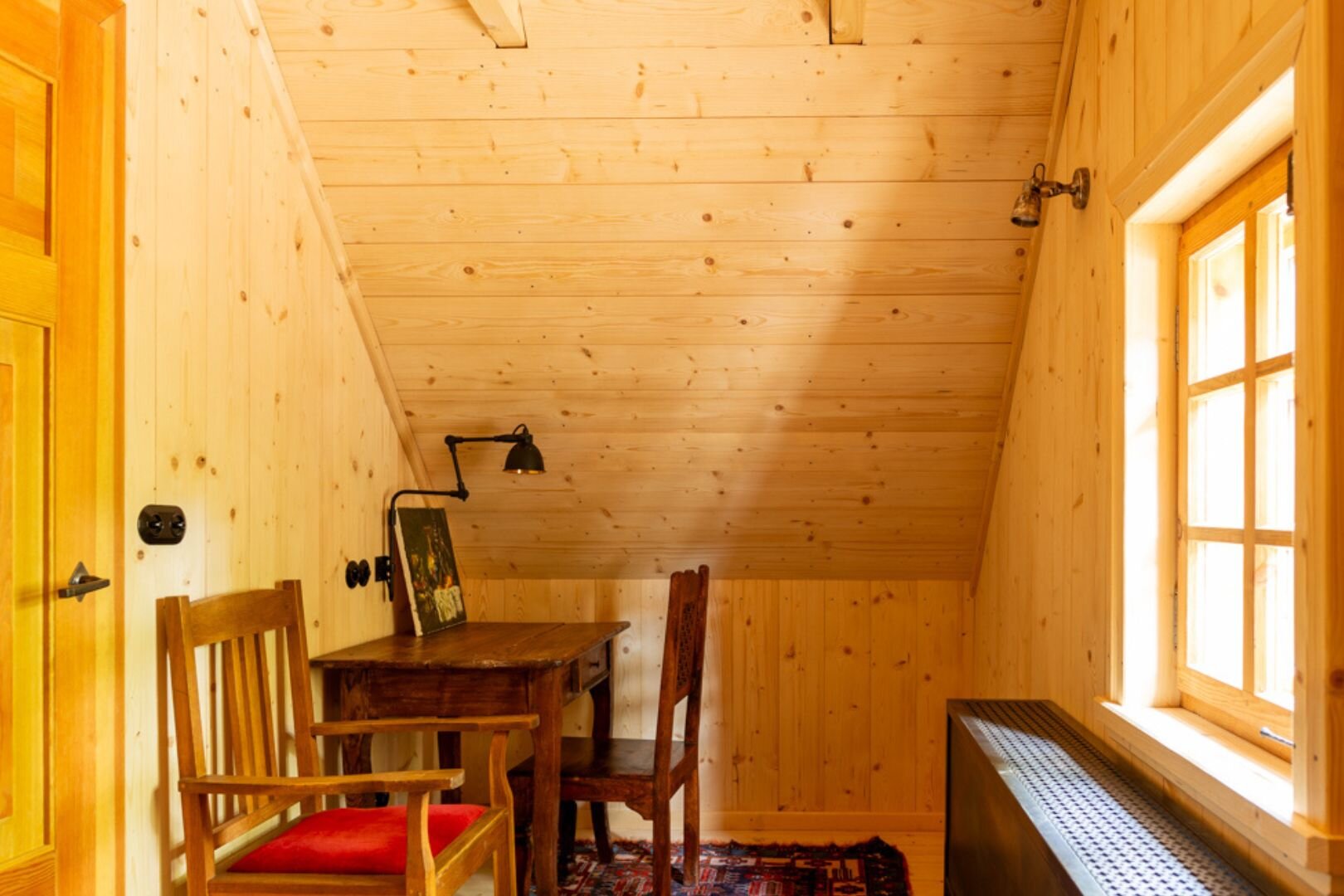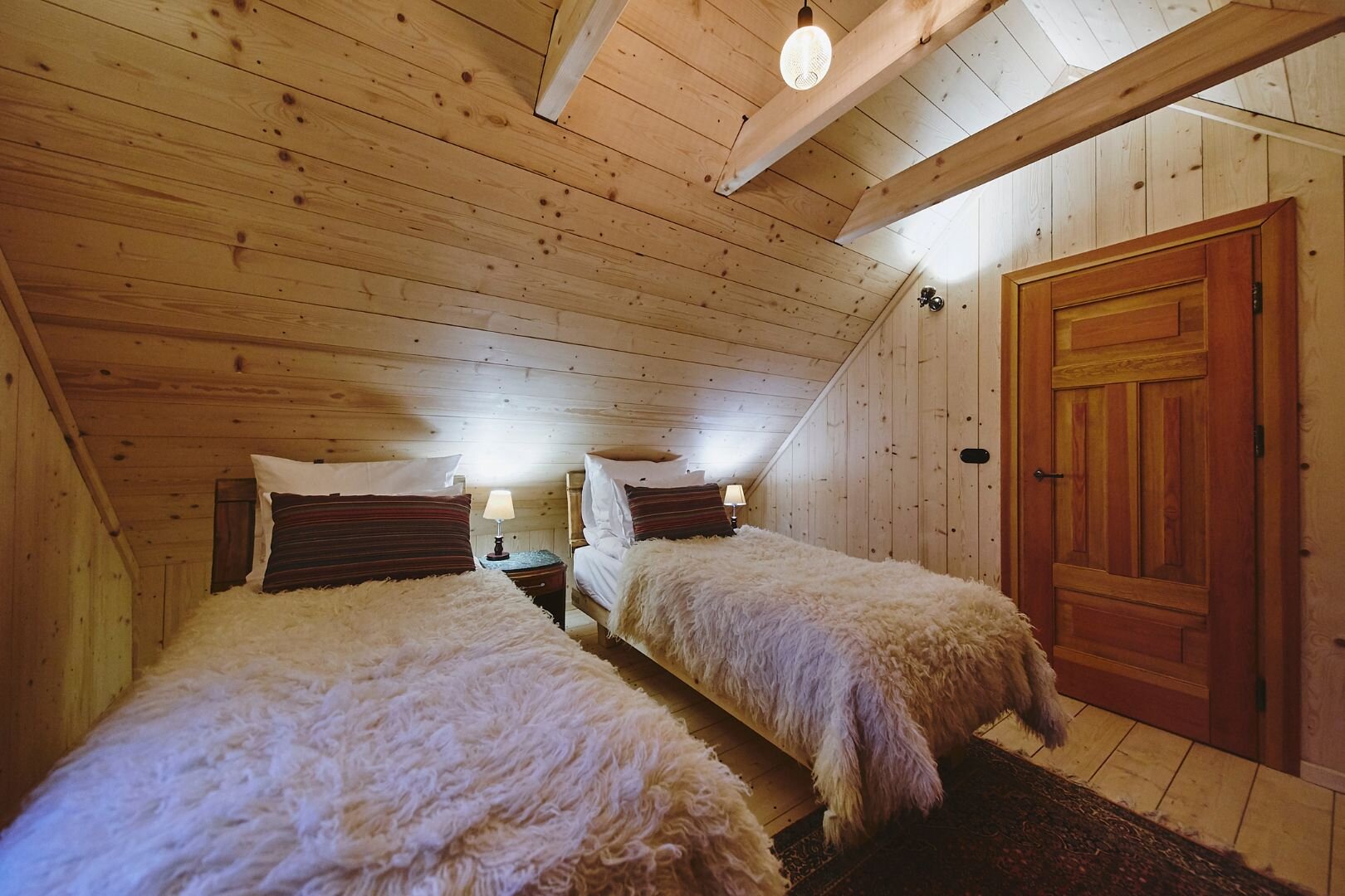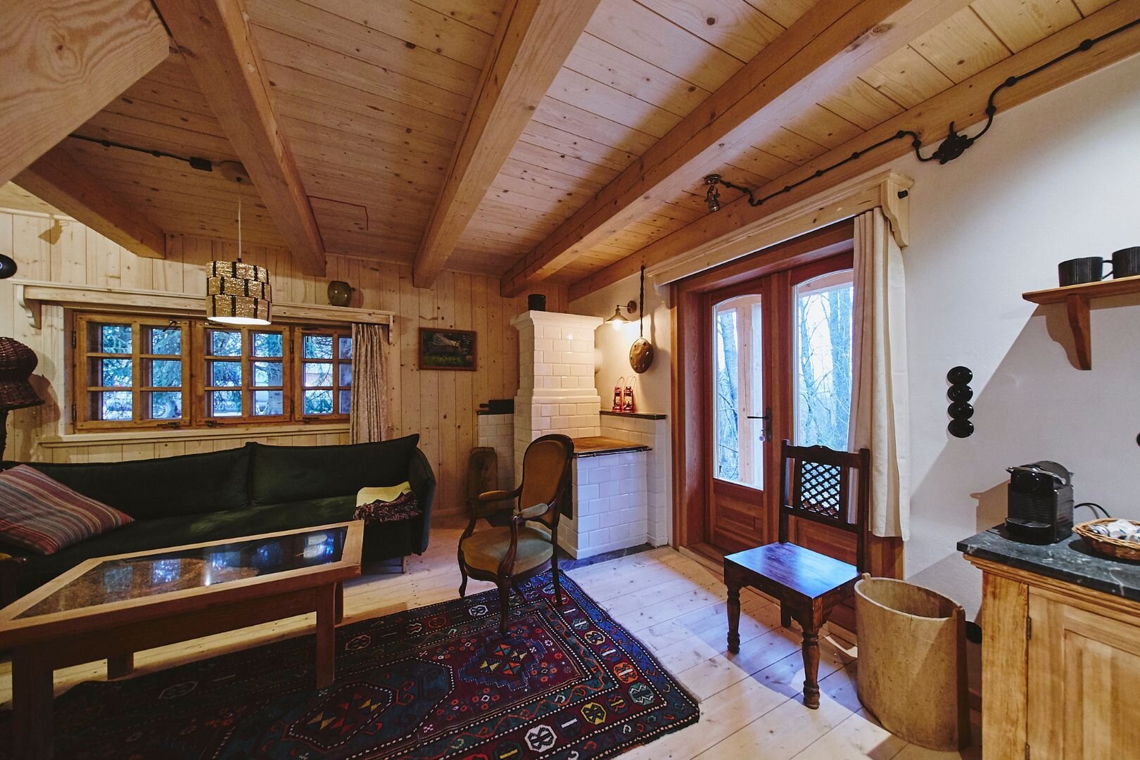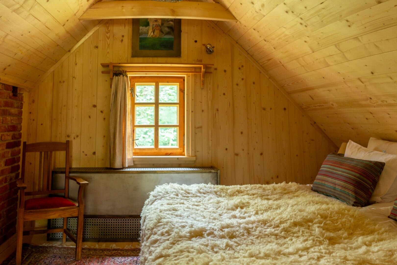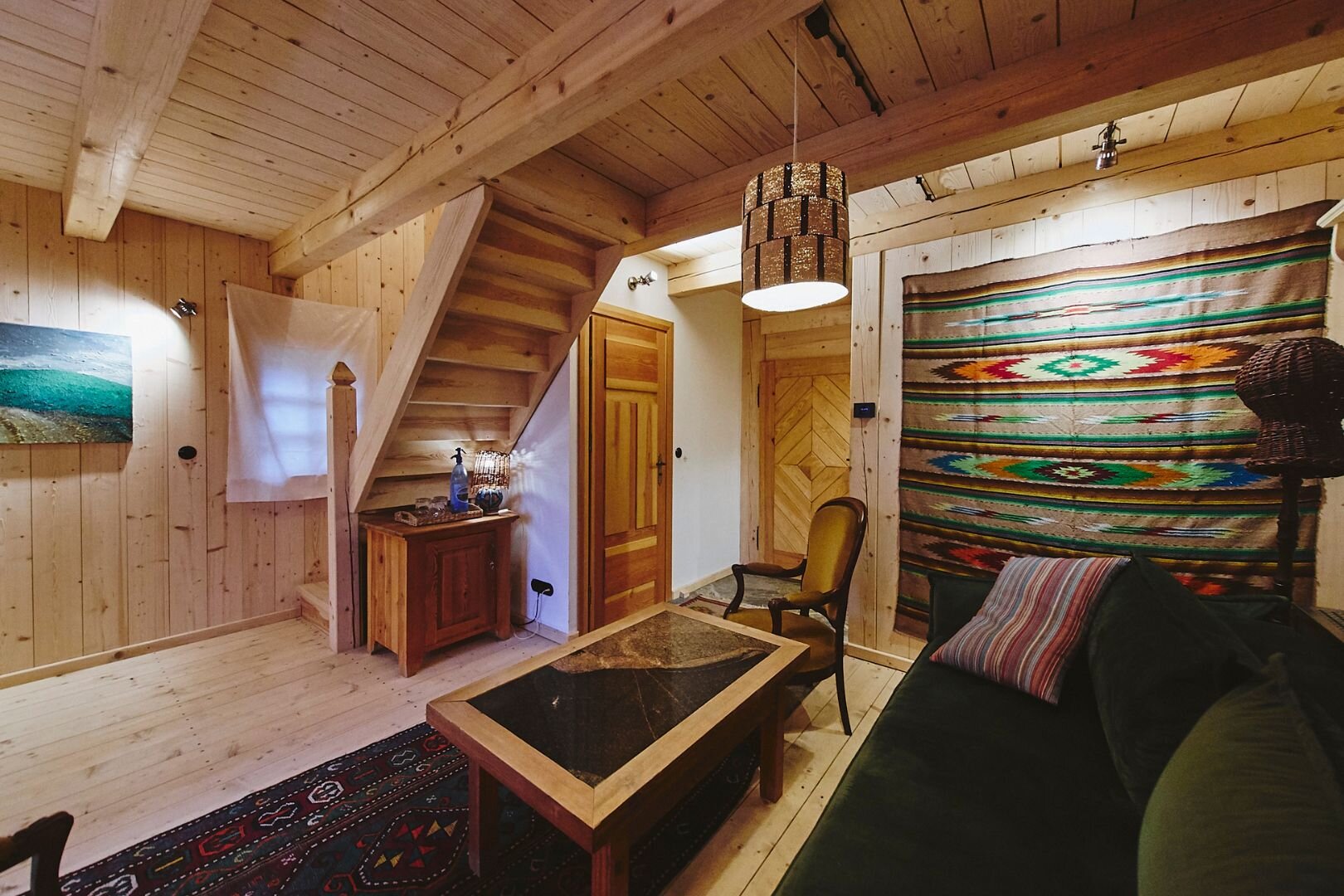 Pokój "Żuraw" to obszerne i przytulne wnętrze, idealne dla maksymalnie trzech osób. Oferuje komfortowe łóżko małżeńskie na antresoli oraz rozkładaną sofę. Luksusowa łazienka jest wyposażona w ręczniki, szlafroki i kosmetyki. Dodatkowo pokój posiada ekspre