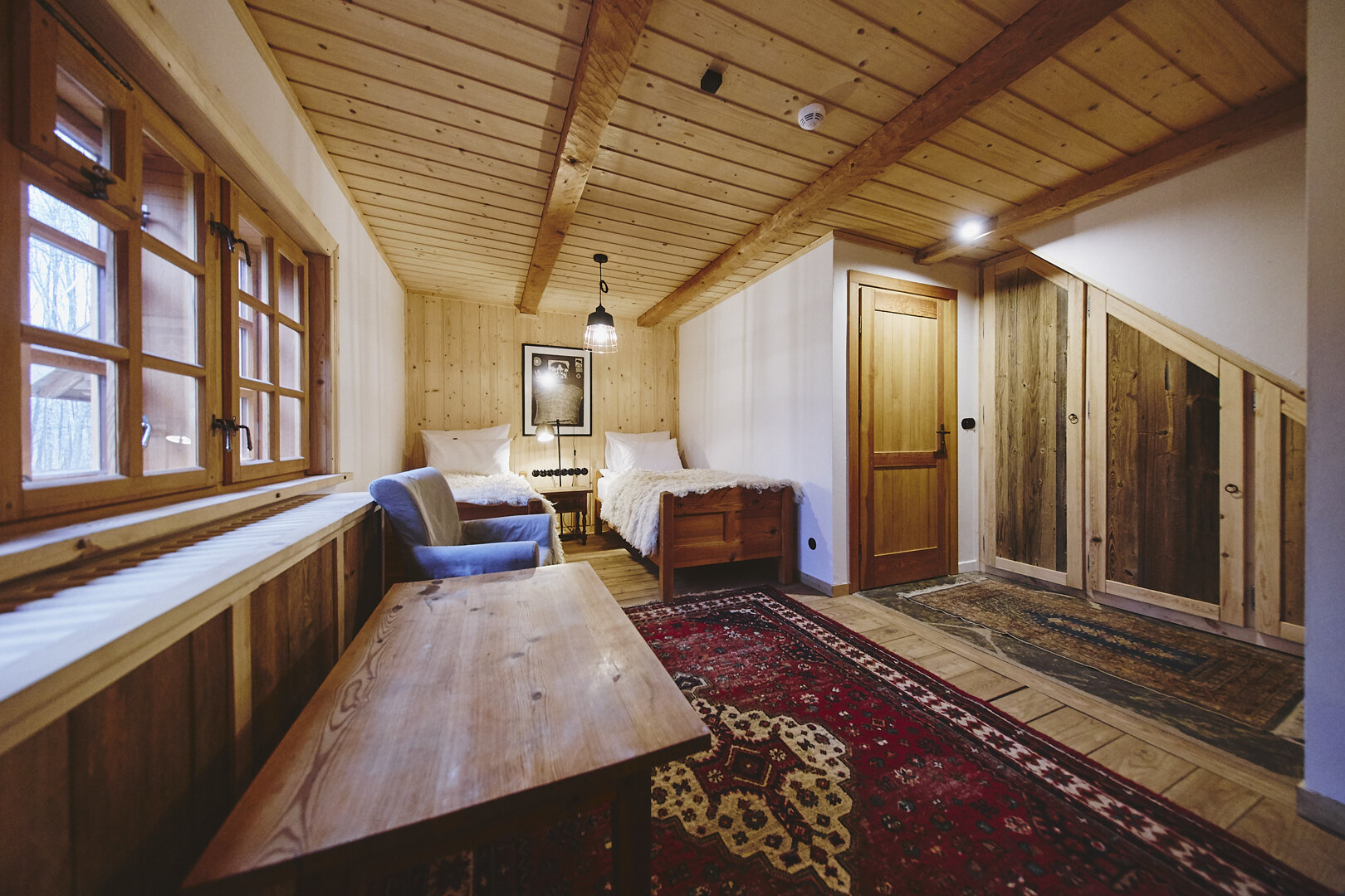 Pokój "Żuraw" to obszerne i przytulne wnętrze, idealne dla maksymalnie trzech osób. Oferuje komfortowe łóżko małżeńskie na antresoli oraz rozkładaną sofę. Luksusowa łazienka jest wyposażona w ręczniki, szlafroki i kosmetyki. Dodatkowo pokój posiada ekspre
